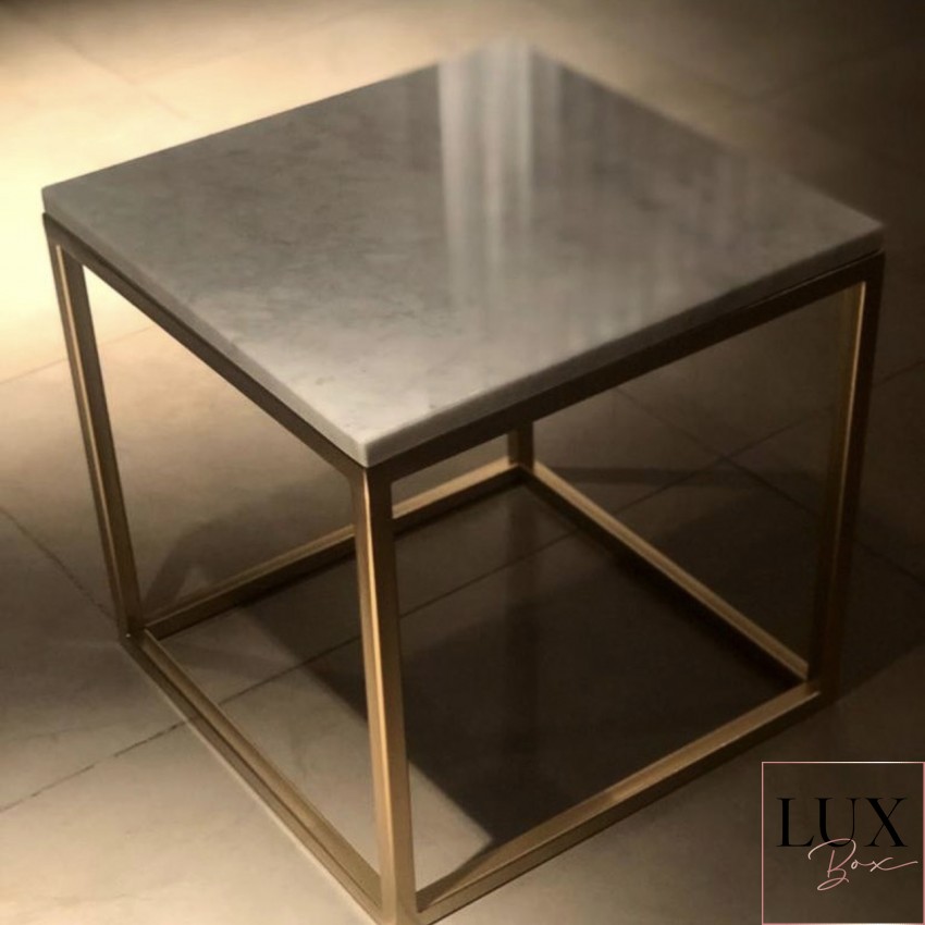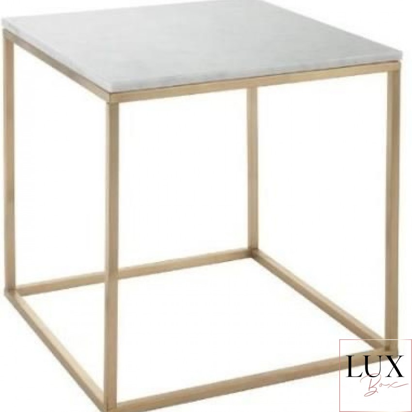 Елегантно и современо парче мебел изработено од бел природен мермер и златна метална рамка. Идеална маса за кафе или странична масичка која совршено прилега во секој ентериер.