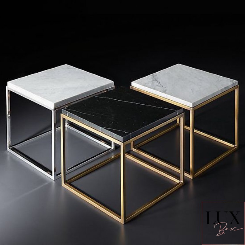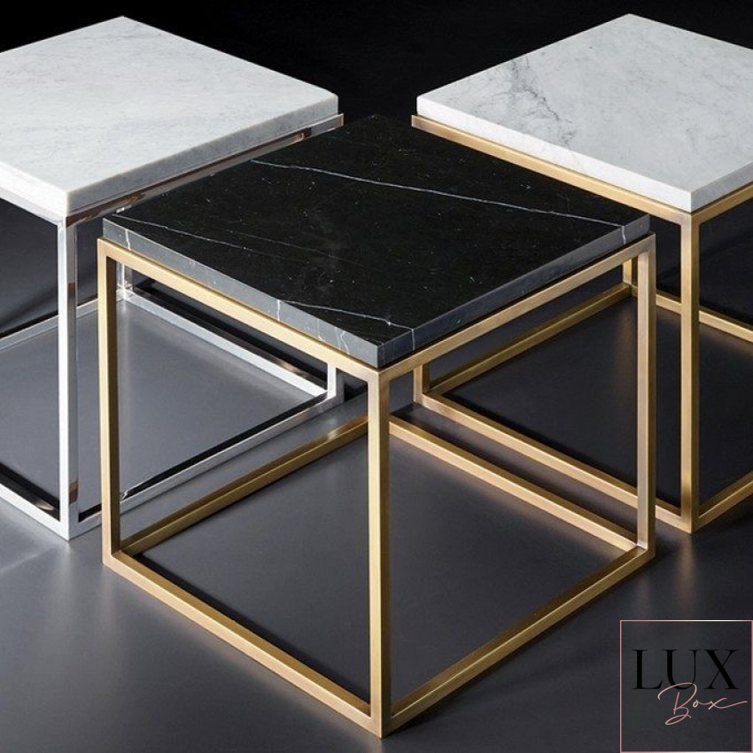Елегантно и современо парче мебел изработено од црн природен мермер и златна метална рамка. Идеална маса за кафе или странична масичка која совршено прилега во секој ентериер.