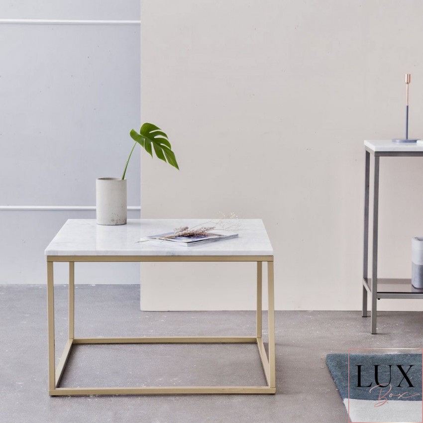 Елегантно и современо парче мебел изработено од бел природен мермер и златна метална рамка. Идеална маса за кафе која совршено прилега во секој ентериер.