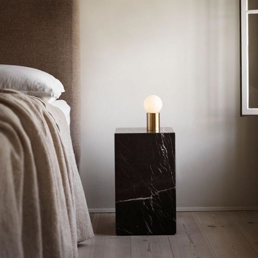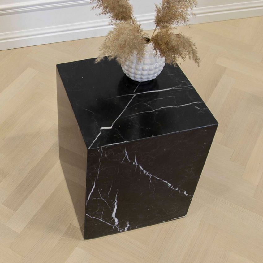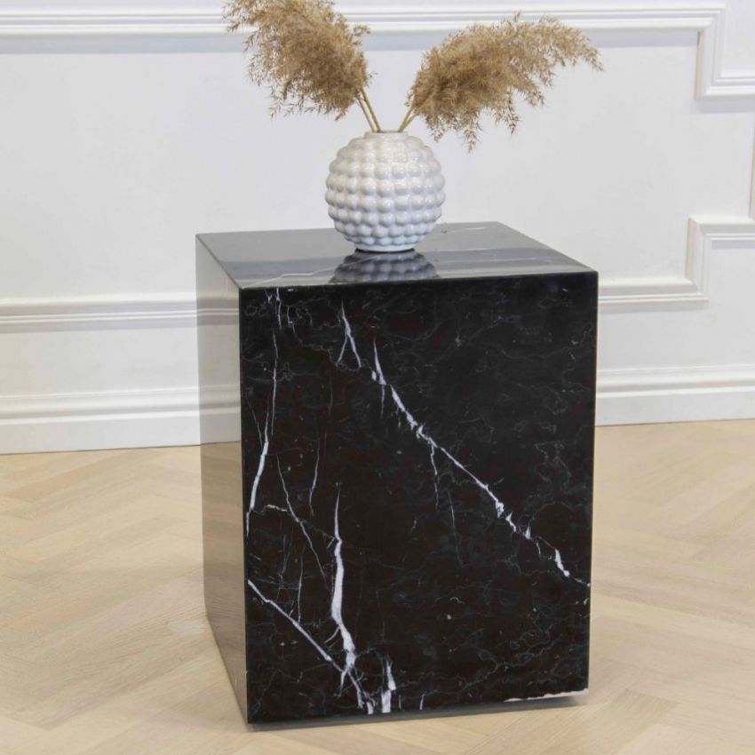 Странична маса и елегантен подиум за омилената книга, ламба или вазна со цвеќе, изработена од црн природен мермер.