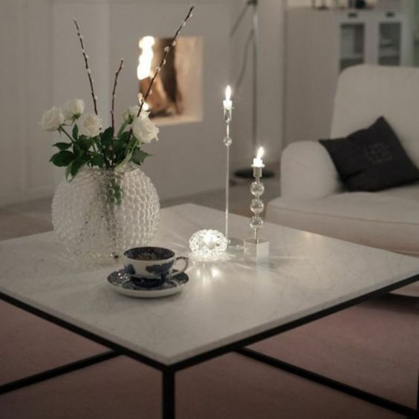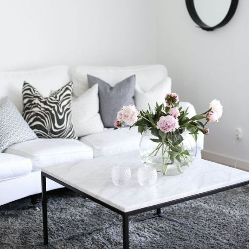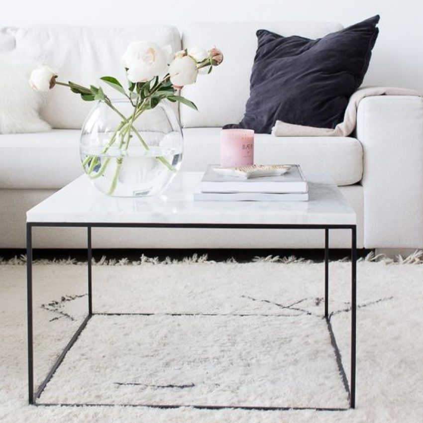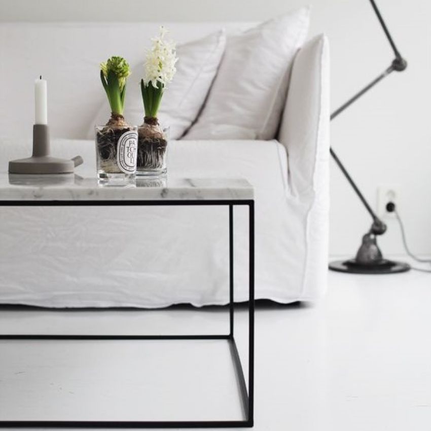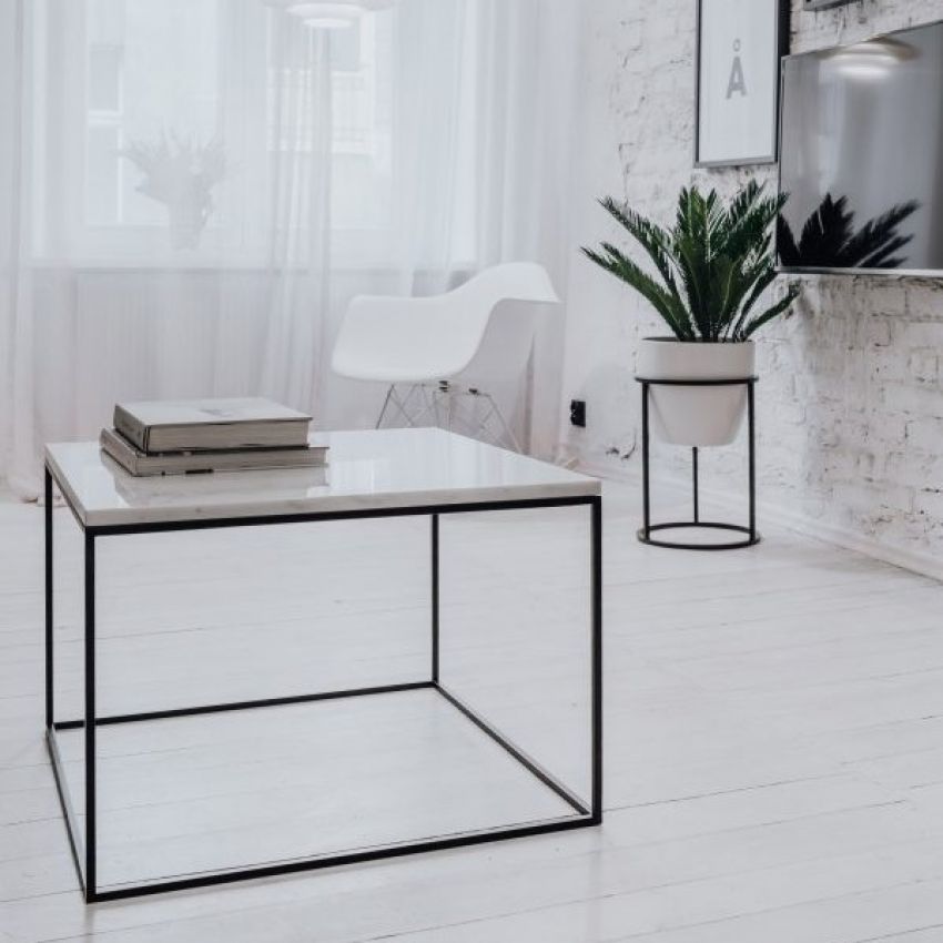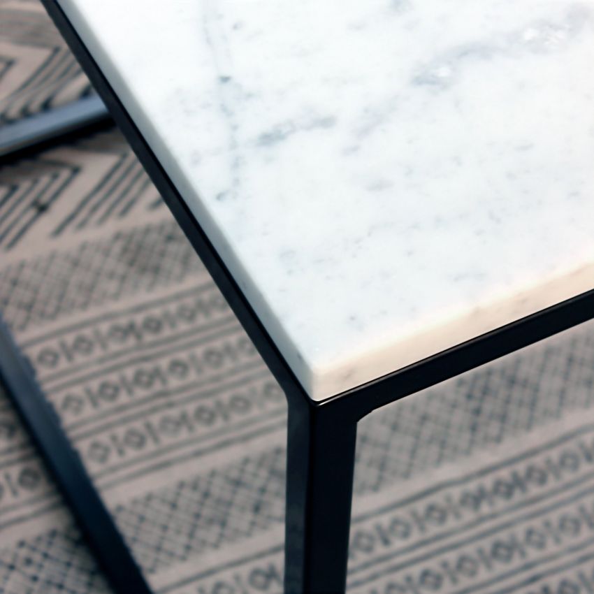 Елегантно и современо парче мебел изработено од бел природен мермер и црна метална рамка. Идеална маса за кафе која совршено прилега во секој ентериер.