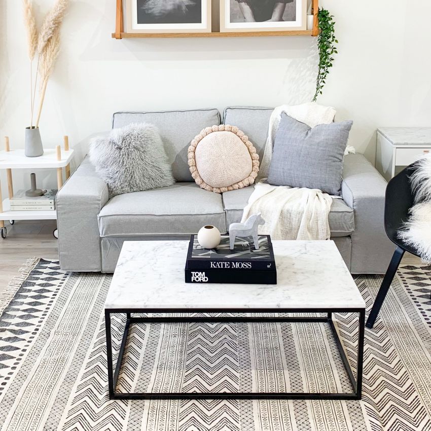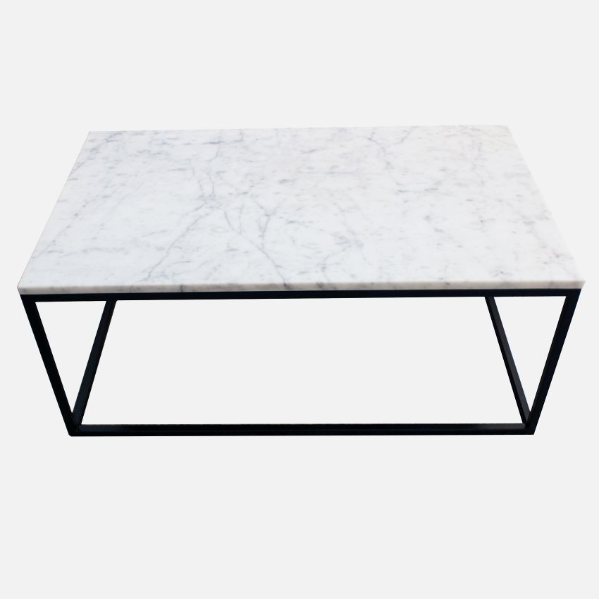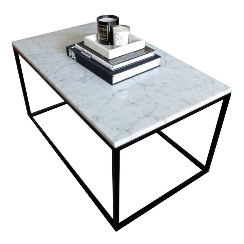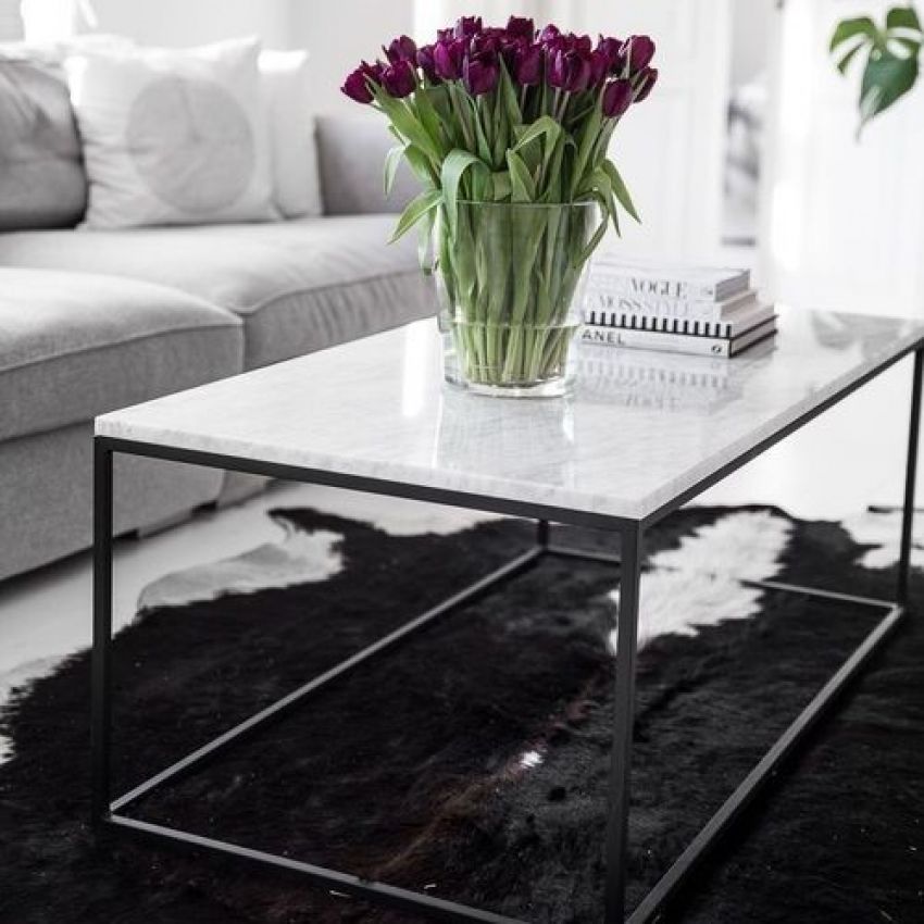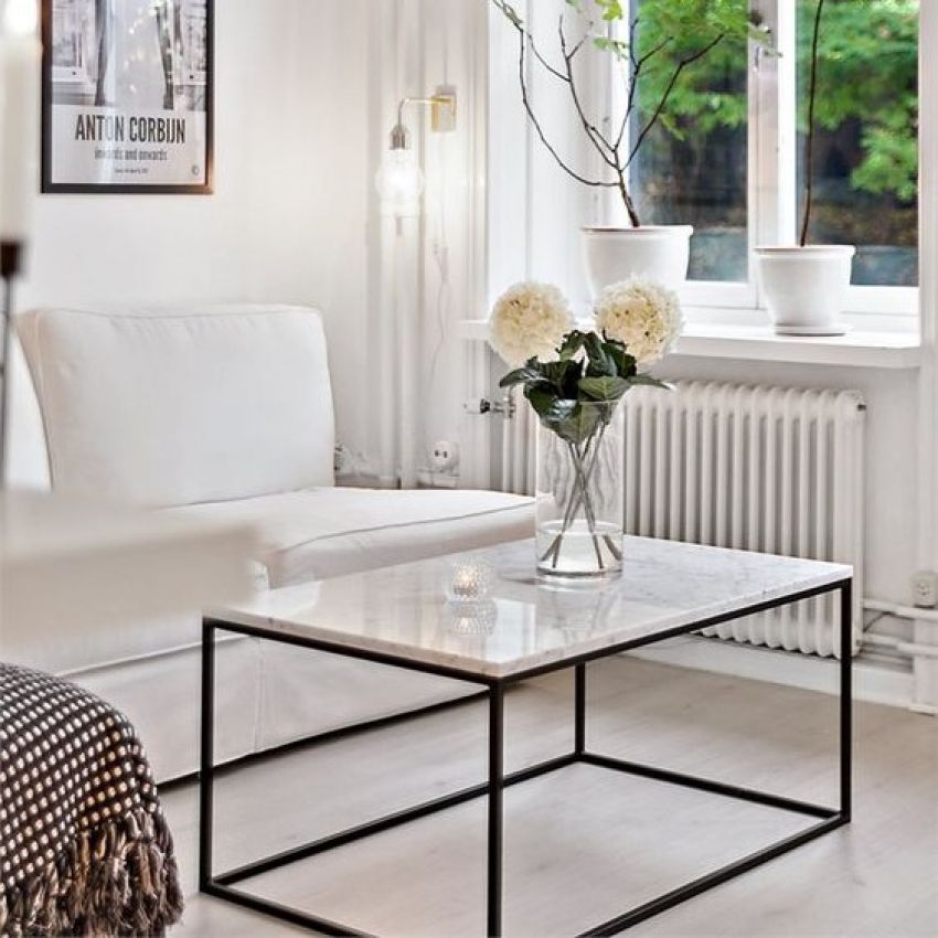 Елегантно и современо парче мебел изработено од бел природен мермер и црна метална рамка. Идеална маса за кафе која совршено прилега во секој ентериер.