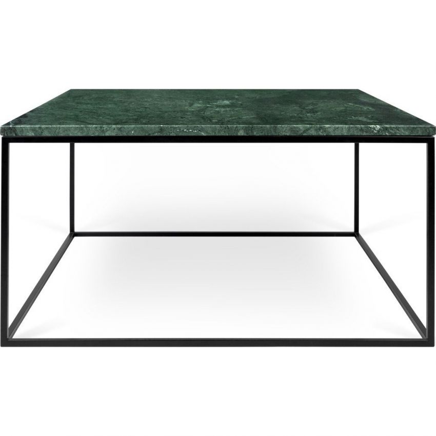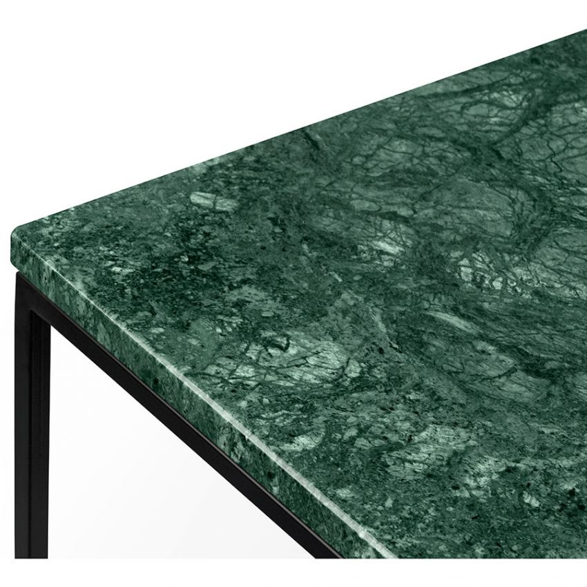Елегантно и современо парче мебел изработено од зелен природен мермер и црна метална рамка. Идеална маса за кафе која совршено прилега во секој ентериер.