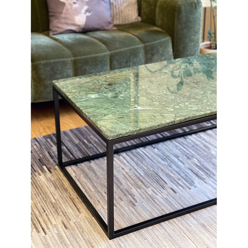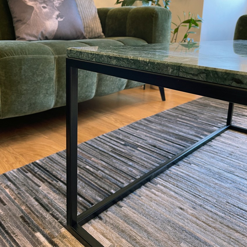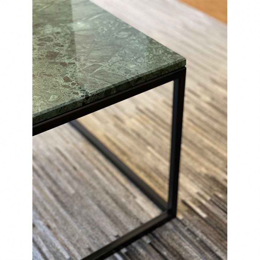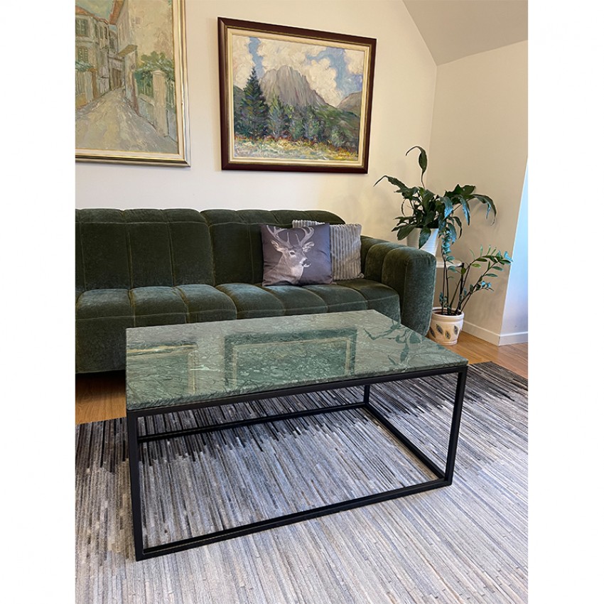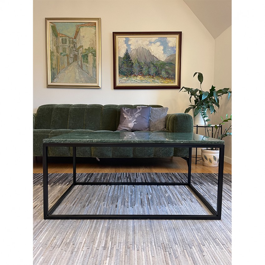 Елегантно и современо парче мебел изработено од зелен природен мермер и црна метална рамка. Идеална маса за кафе која совршено прилега во секој ентериер.