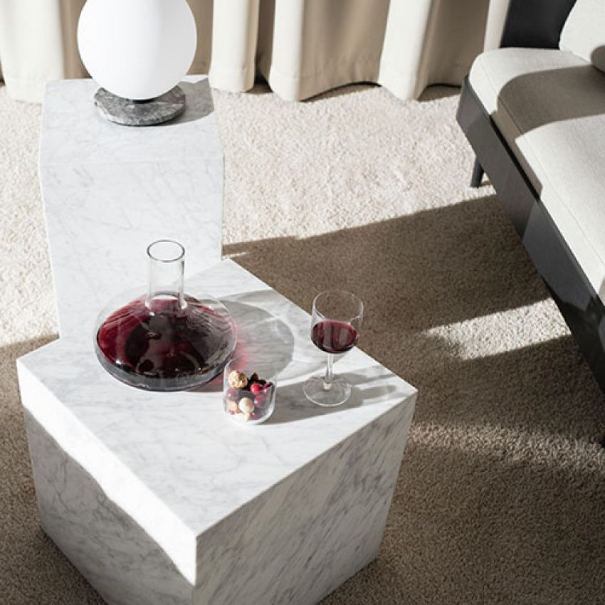 Безвременскo парче изработено од бел природен мермер кое истовремено е практична маса за кафе, но и елегантен подиум за омилената книга, ламба или вазна со цвеќе.