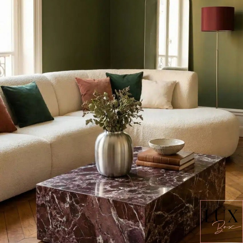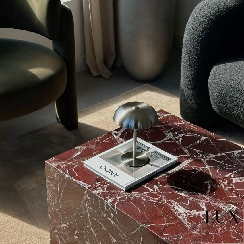 Евоцирајќи го гламурот на дизајните на италијанскиот мебел од 1950-та, LuxBox мермерните маси се одликуваат со целосна мермерна обвивка на која елегантно прикажаните природни вени внесуваат софистицираност и свежина во секој ентериер. LuxBox e достапен во три димензии: Low, Cubic и Tall, и во четири видови на мермер: бел, црн, сив и кафен.